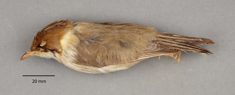- EN Yuhina flavicollis albicollis collected by A.E. Jones on 11-03-1917 at Patiali State N.W.Himalayas